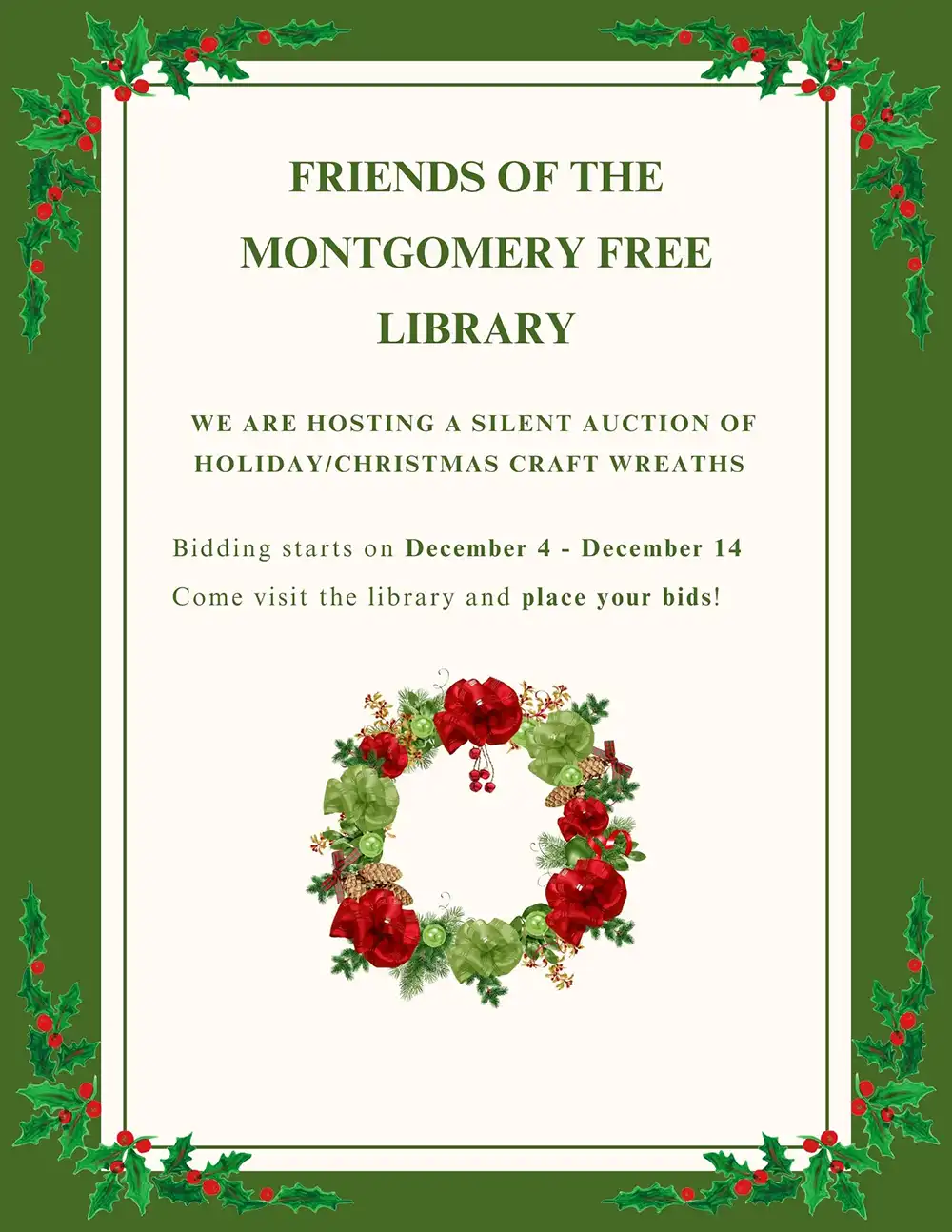 Friends Of The Montgomery Free Library is hosting a silent auction of holiday/Christmas craft wreaths